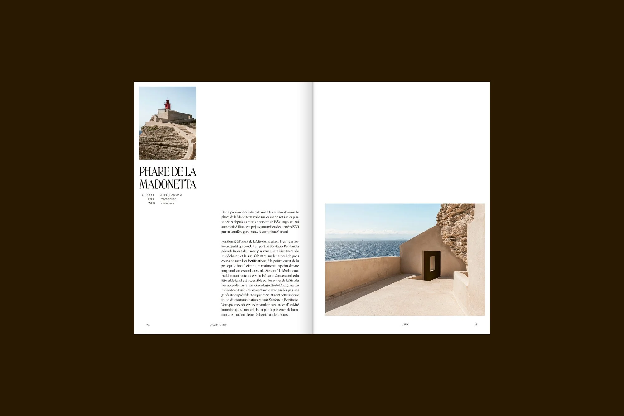 Ce guide est un portrait de la Corse qui propose une sélection pointue des lieux marquants de l’île, pensée autant pour les voyageurs que pour les locaux. Un voyage à travers la Corse intime, loin des itinéraires convenus. Plutôt qu’une liste exhaustive, le guide offre une sélection resserrée d’adresses qui incarnent notre esprit éditorial : des lieux qui vibrent, inspirent et donnent envie d’y revenir. Cent étapes réunissant hôtels, tables, randonnées, baignades, lieux et boutiques, choisies pour leur singularité, leur esthétisme et l’histoire qu’elles racontent.